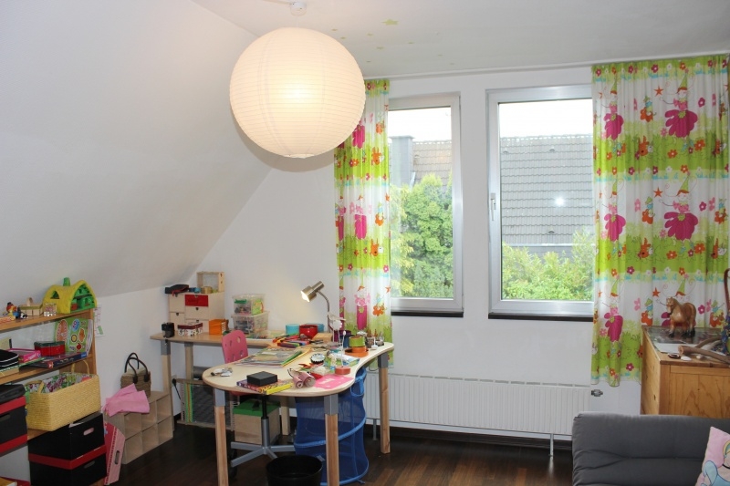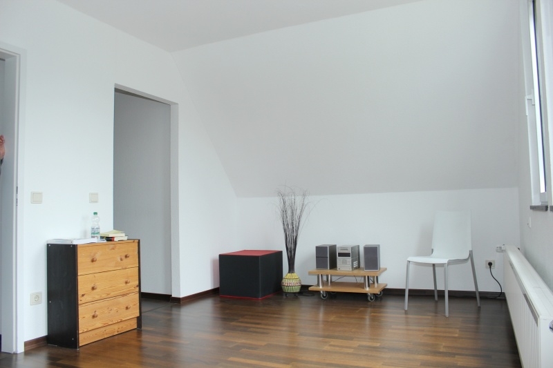 Der Spitzboden ist mit Holzboden belegt und wird zur Zeit als zusätzliche Lager- und Spielfläche genutzt. Der Zugang erfolgt über eine Einschubtreppe
