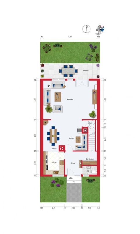 Der uneinsehbare Garten mit Terrasse zum Relaxen und Rasenfläche zum Spielen rundet dieses schöne Familiendomizil ab.