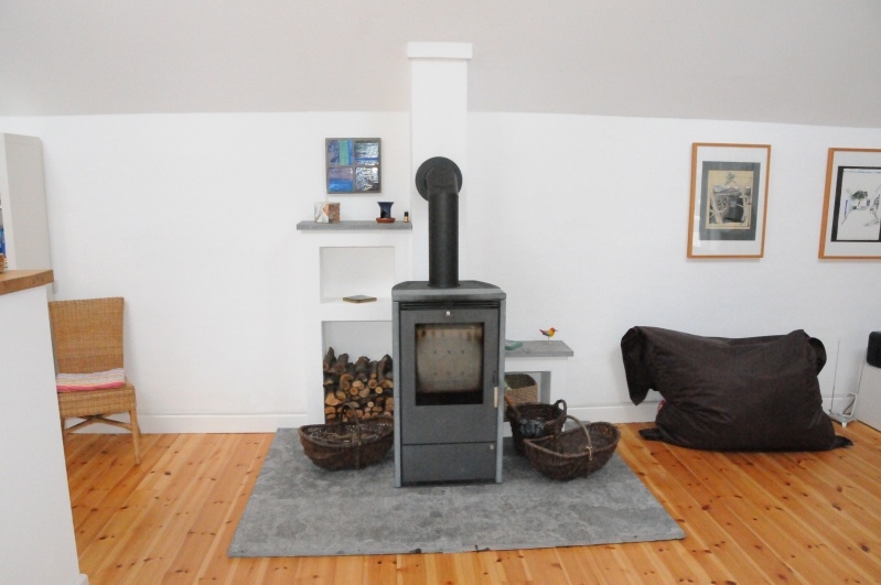 Modernes Wohnen in historischem Ambiente; diese offen gestaltete Wohnung im Obergschoss eines Nebengebäudes in der Vierkanthofanlage strahlt Wohlfühlatmosphäre aus.Der große offene Wohnbereich mit integrierter Küche im Thekenstil, das an den Wohnbereich angrenzende Schlafzimmer und ein schickes Bad bietet Wohnen mit Flair. Der Kaminofen strahlt Gemütlichkeit an kalten Wintertagen. Insbesondere die Deckenhöhe mit freiliegenden Holzbalken - weiss gestrichen- vermittelt Modernietät und Ursprünglichkeit.