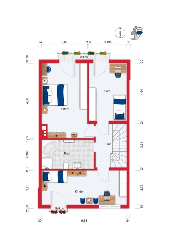 Die genaue Raumaufteilung entnehmen Sie bitte den beigefügten Grundrissen.