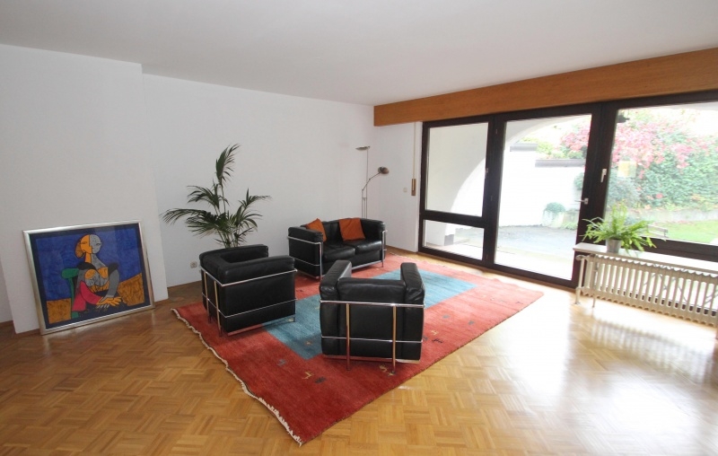 Im Erdgeschoss befinden sich die Diele, die Gäste-Toilette und ein großzügiges Wohn-/Esszimmer mit Ausgang zu Terrasse und Garten. Die derzeit separate Küche kann durch Öffnung dem Wohnzimmer angegliedert werden.