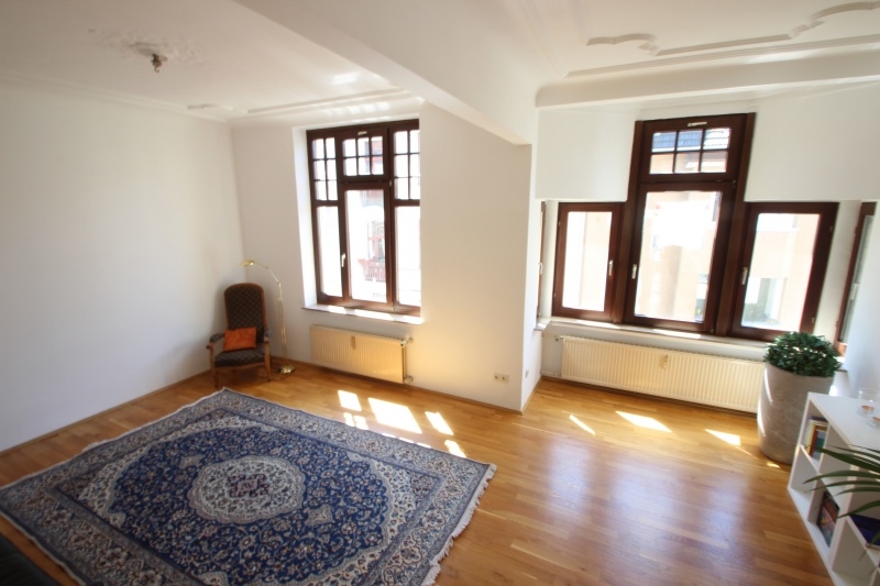 Helligkeit und Wohlfühlatmosphäre strahlt diese schöne Altbauwohnung aus. Der Jugendstil Verzierungen sind hier mit den geschmackvollen Stuckdecken konsequent weiter verfolgt und der Kontrast zwischen den hellen Wänden und den warmen Parkettboden harmonieren perfekt. Edle Fensterfronten durchströmen die hohen Räumlichkeiten mit einem Meer von Licht und lassen sie so noch ansehnlicher wirken.