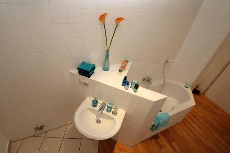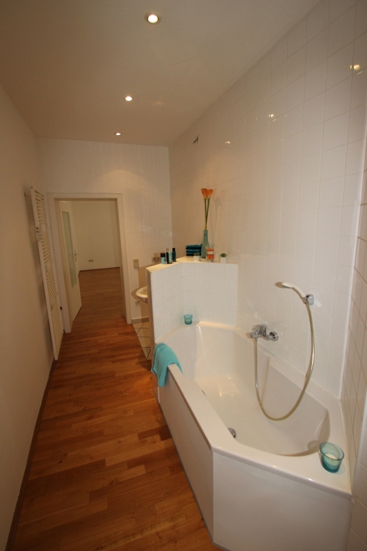 Anliegendes Bad an das Schlafzimmer: Badewanne und Waschbecken (2000)