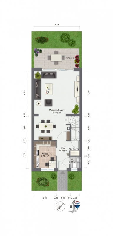 Das Reihenhaus in Südwestlage ist bestens geeignet für junge Familien - die gute Raumaufteilung bietet Platz zum Leben, Spielen, Arbeiten - abseits vom Großstadtlärm.Der kleine Garten ist mit einer Hecke umgeben und zu den Nachbarn abgegrenzt durch eine Mauer zur Linken und Holzpaneelen zur Rechten. Kleine Beete fassen den pflegeleichten Garten ein, der je nach Geschmack individuell umgestaltet werden kann.