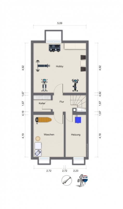 2 Abstellräume (Vorrat + Waschen), Heizungsraum