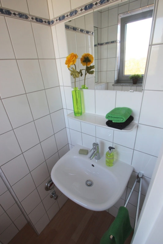 Gäste-WC: mit Fenster, Handwaschbecken, Hänge-WC - weiß