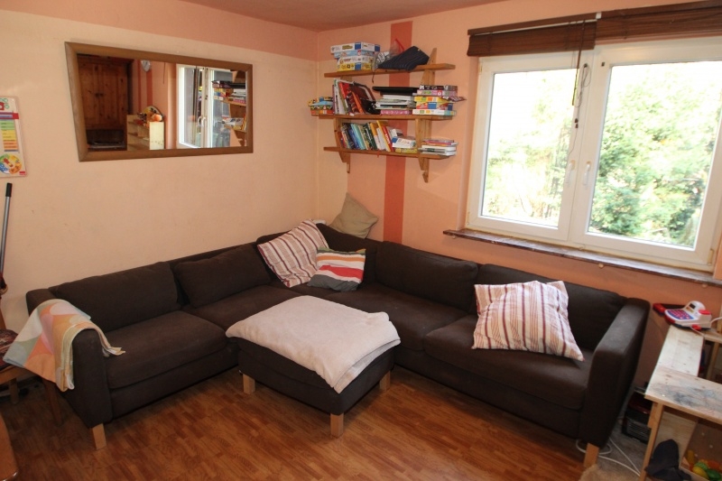 Derzeit sind die Wände und Decken ohne Tapeten, also im Rohzustand, nur zum Teil verputzt. Sie haben die Gestaltung in der Hand. Eine Wand wird zu Lasten des Eigentümers saniert.