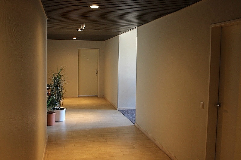 Treppenhaus: Fliesen und hochwertiger Teppich im Gang