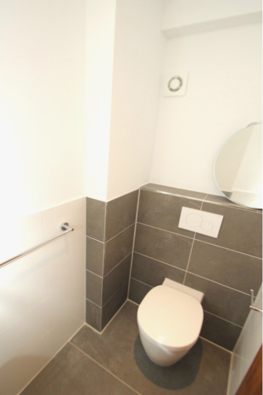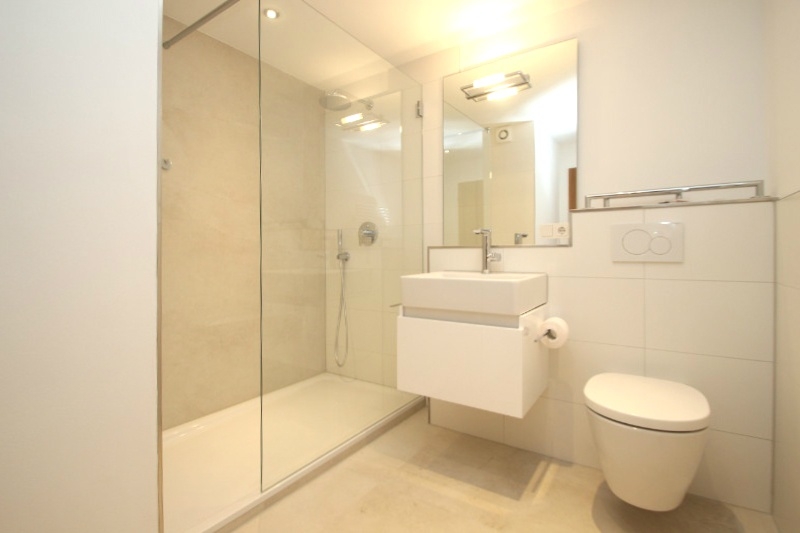 Neues Bad aus 2016 mit großer Glasdusche, WC und Waschbecken
