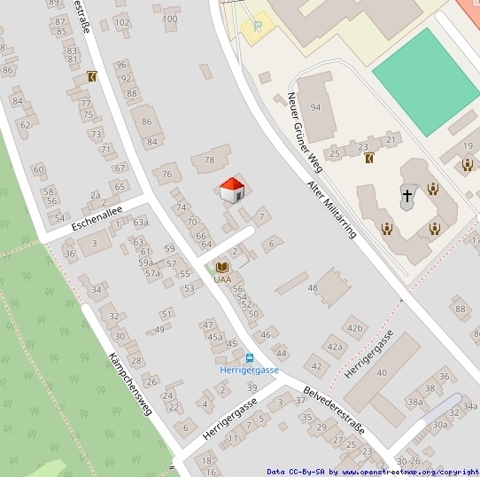 Anbindungen an ÖPNV sind durch die in der Nähe befindlichen Buslinien 141,143,144, sowie durch die Bahnlinie 1 gegeben.