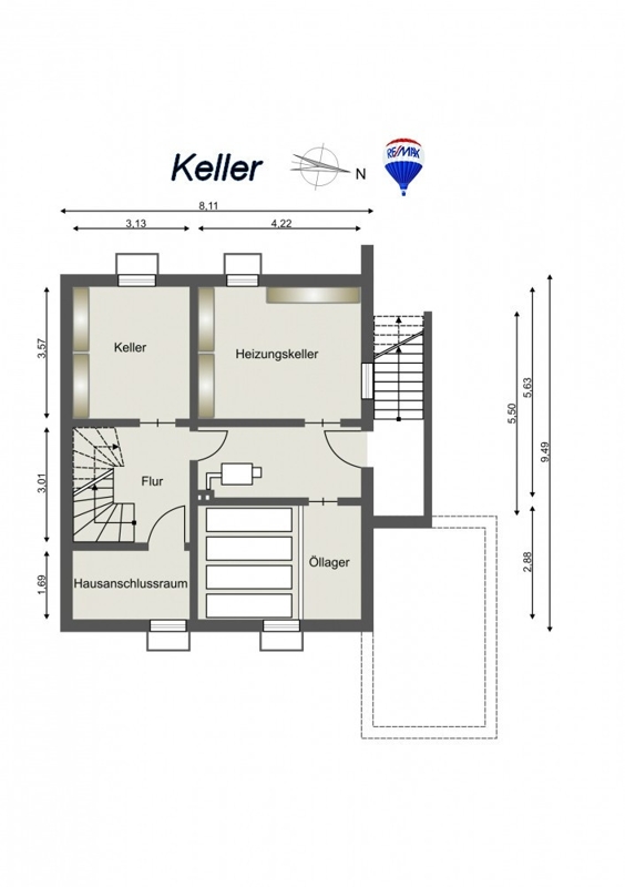 Keller: Heizungskeller, Waschraum, großer Raum evtl. für Saunabereich (Dusche vorhanden)