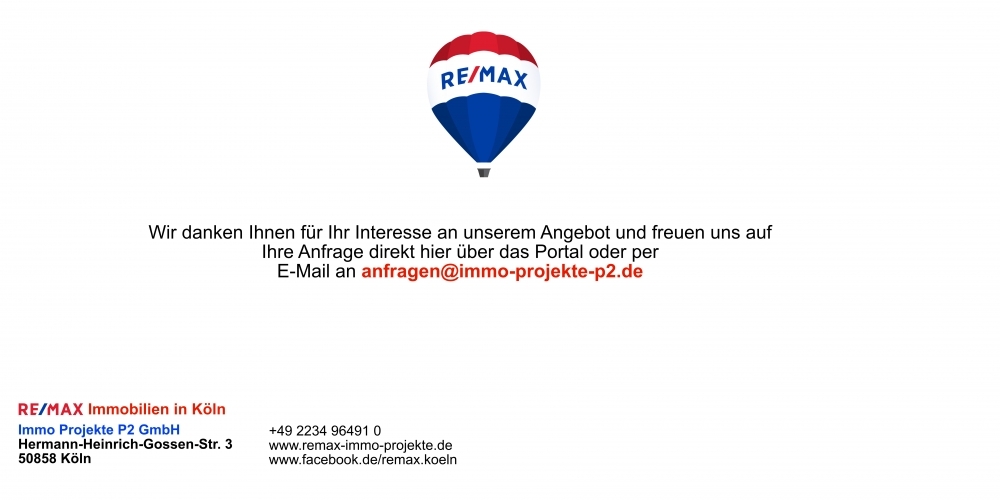 Dann freuen wir uns auf Ihre Kontaktaufnahme unter Tel. 02234 - 96491 0 oder per Mail an: anfragen@immo-projekte-p2.de