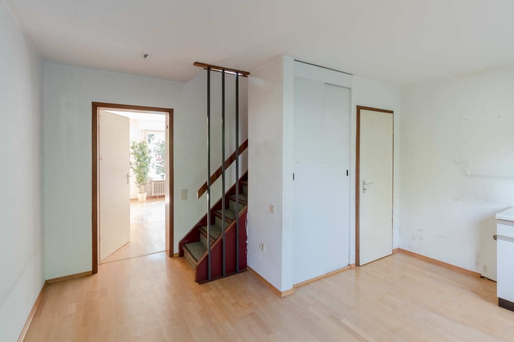 Das vollunterkellerte Reihenmittelhaus mit Wohn-/Esszimmer, Küche, Badezimmer und 2 Schlafzimmern bietet Ihnen große Gestaltungsfreiheit. 2 Kinderzimmer sind zusammengelegt worden und können nach Bedarf wieder getrennt werden. Der kleine Garten lässt sich ohne große Aufwand umgestalten und lädt zum Relaxen ein.