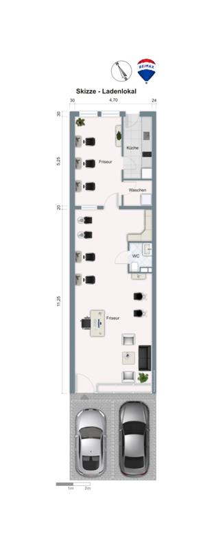 Die angebotene Immobilie wird derzeit als Friseursalon genutzt. Bis auf gastronomische Betriebe können alle Branchen mit interessanten Konzepten durchstarten.