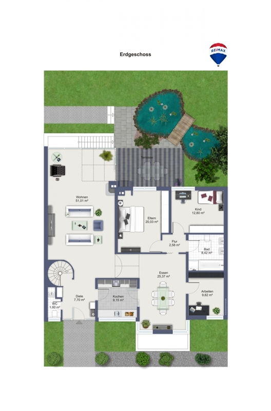Nutzen Sie die Vorzüge des wohnwirtschaflich, hochwertig ausgebauten Souterrains bspw. für einen Arbeitsbereich oder ermöglichen Sie Ihrem Kind großzügiges Wohnen!