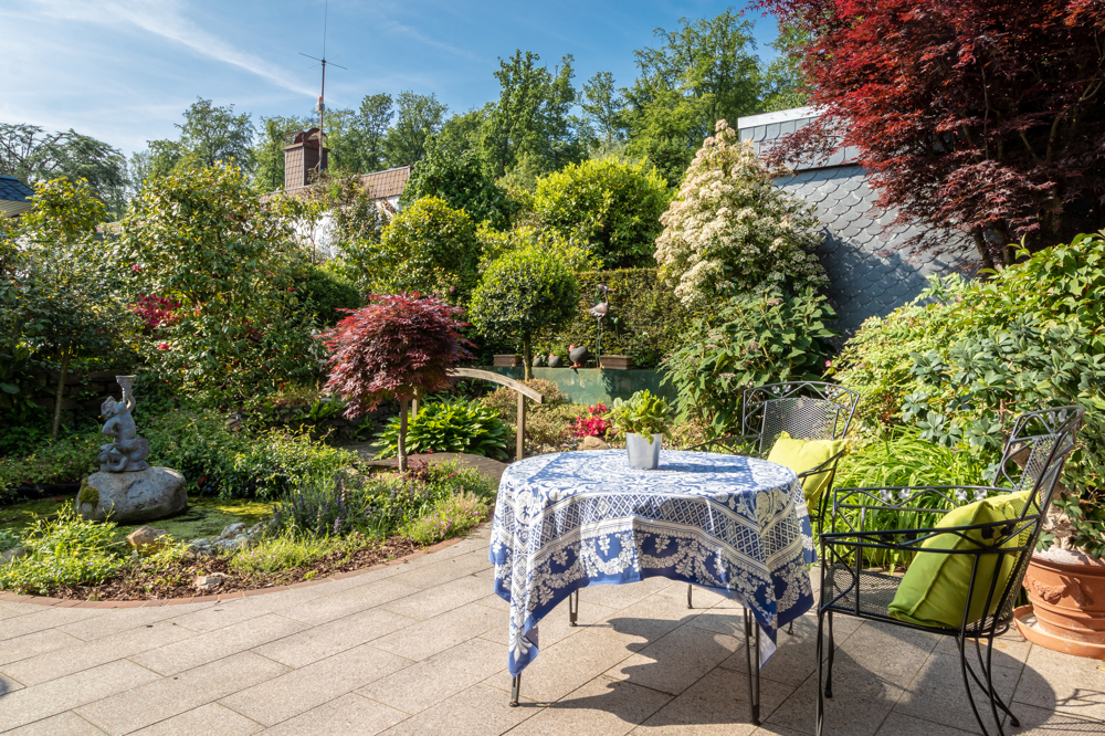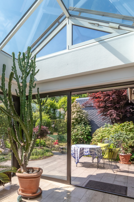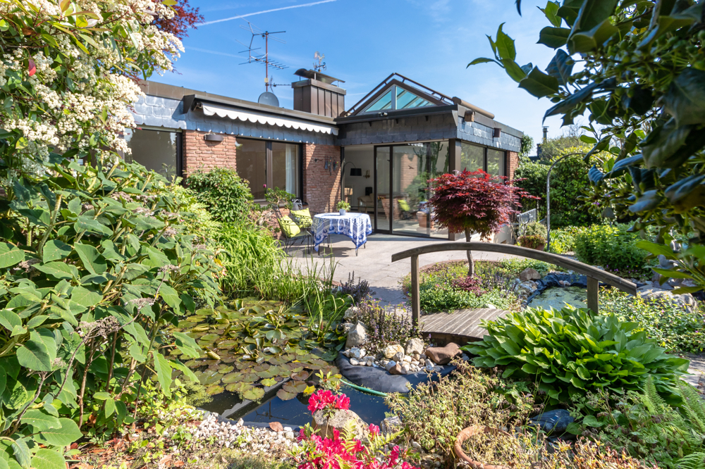 Die offene Gestaltung der Räume, die interessanten Lichtkuppeln und der liebevoll angelegte, uneinsehbare Garten mit Teich vermitteln einen hohen Wohlfühlfaktor.