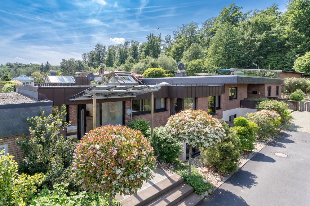Dieser repräsentative Bungalow wurde 1978 auf einem schönen Grundstück in ruhiger naturnaher Waldrandlage erbaut und bietet viel Platz, sowohl für die Familie als auch für das Wohnen und Arbeiten unter einem Dach.Das Erdgeschoss mit ca. 150 m² Wohnfläche - verteilt auf 5 Zimmer- bietet ein komfortables Wohnen: Geräumiger Eingangsbereich, ein eindrucksvolles Wohnzimmer mit wintergartenartigem Flair und gemütlichem Kamin, separater Essbereich mit angrenzender Küche, 3 Schlaf- / Arbeitszimmer und ein großes Badezimmer mit Tageslicht.