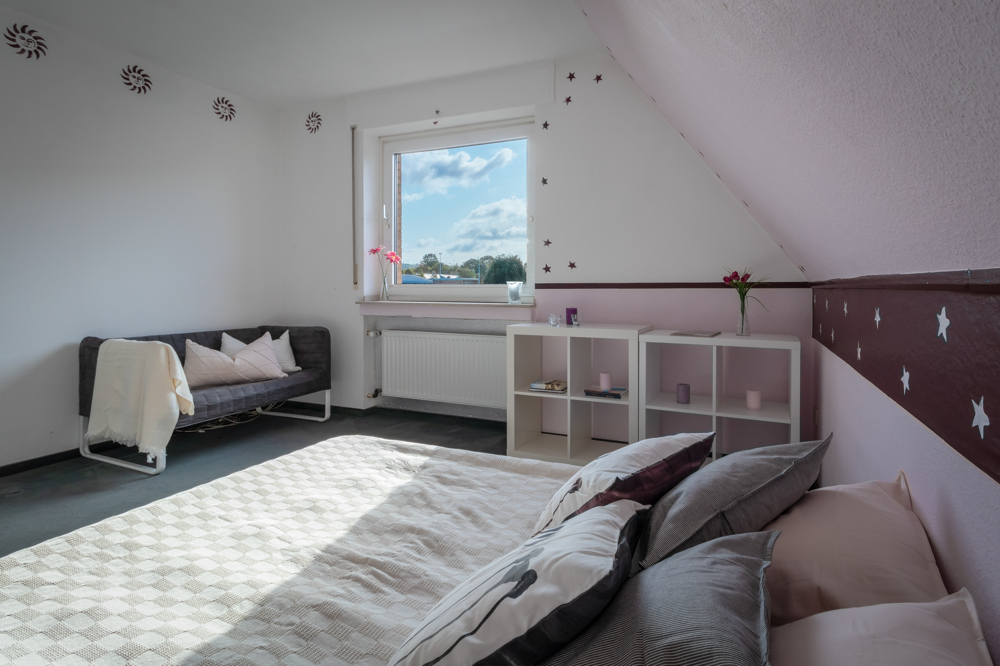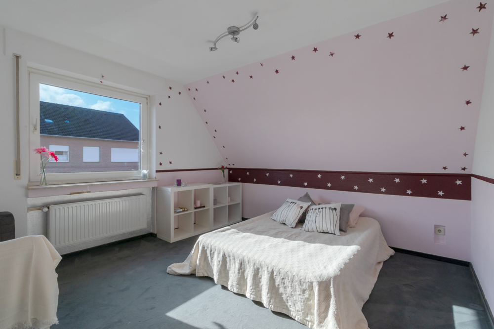 Für Familien ist die Lage des Hauses optimal: Es steht in einer verkehrsberuhigten Straße ohne Durchgangsverkehr und die Grundschule sowie Gesamtschule sind zu Fuß in gerade mal 5 Minuten zu erreichen. Der nächste Kindergarten liegt etwa 9 fußläufige Minuten entfernt.