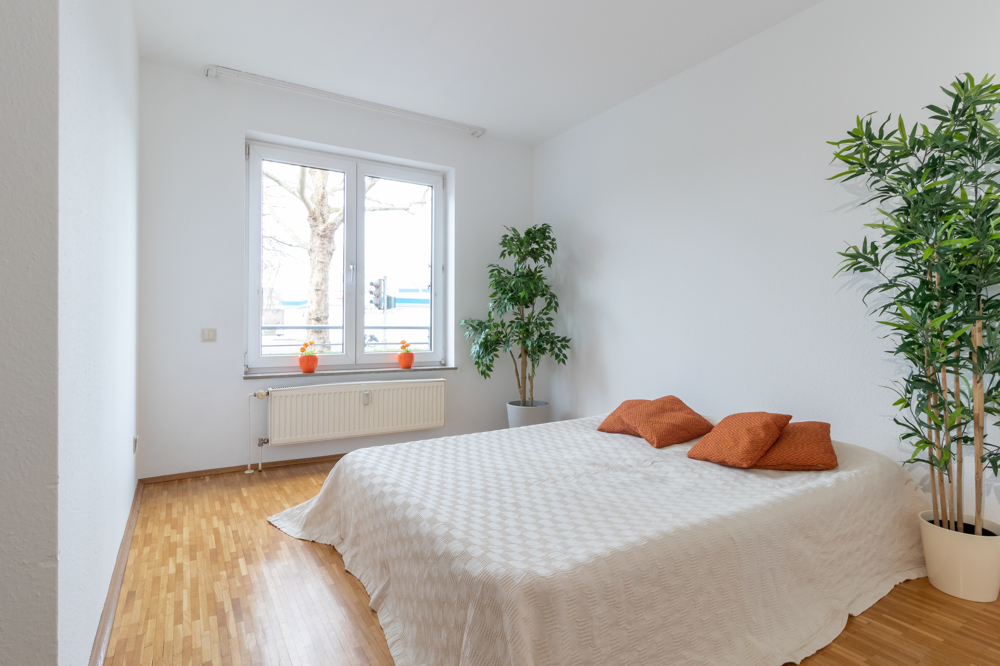 Die Wohnung ist durch die großen Fenster und die Ausrichtung gen Westen angenehm hell.