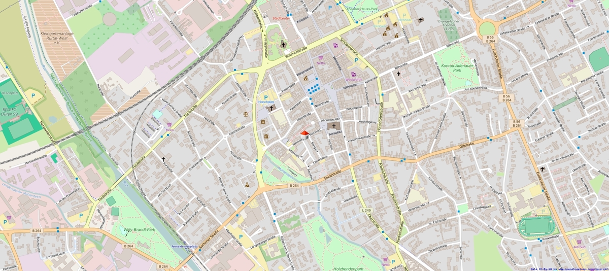 Das angebotene Wohn- und Geschäftshaus liegt in Zentrumsnähe von Düren. Sowohl mit dem Bus, als auch zu Fuß, erreichen Sie in wenigen Minuten die Innenstadt. Vor Ort finden Sie eine gute Infrastruktur mit Einkaufsmöglichkeiten vor. Im Umkreis von ca. 500 m befinden sich zahlreiche Supermärkte.Düren liegt zwischen Aachen und Köln in Nordrhein-Westfalen und ist mit etwa 93.000 Einwohnern eine große Mittelstadt am Nordrand der Eifel.