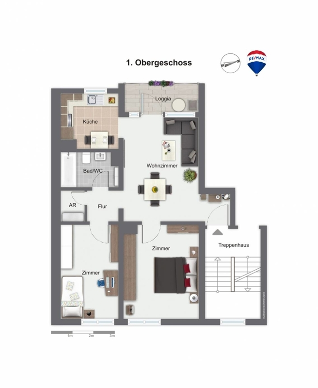 Drei Zimmer, verteilt auf ca. 53 m² ermöglichen eine optimale Nutzbarkeit, auch als WG. Eine Abstellkammer, ein gepflegtes Badezimmer mit Badewanne und eine Loggia mit Westausrichtung runden den positiven Eindruck der Wohnung ab.