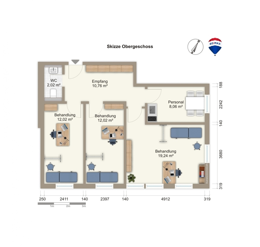 Die zur Anmietung stehenden Flächen stellen wir Ihnen gerne in einem persönlichen Termin vor und freuen uns auf Ihre Kontaktaufnahme.Bisher wurde die Praxis für Ergotherapie genutzt. Da es in diesem Gesundheitszentrum bereits Physiotherapie, Massage, Heilpraktik sowie Logopädie gibt, wäre eine ähnliche Nutzung hier sinnvoll.