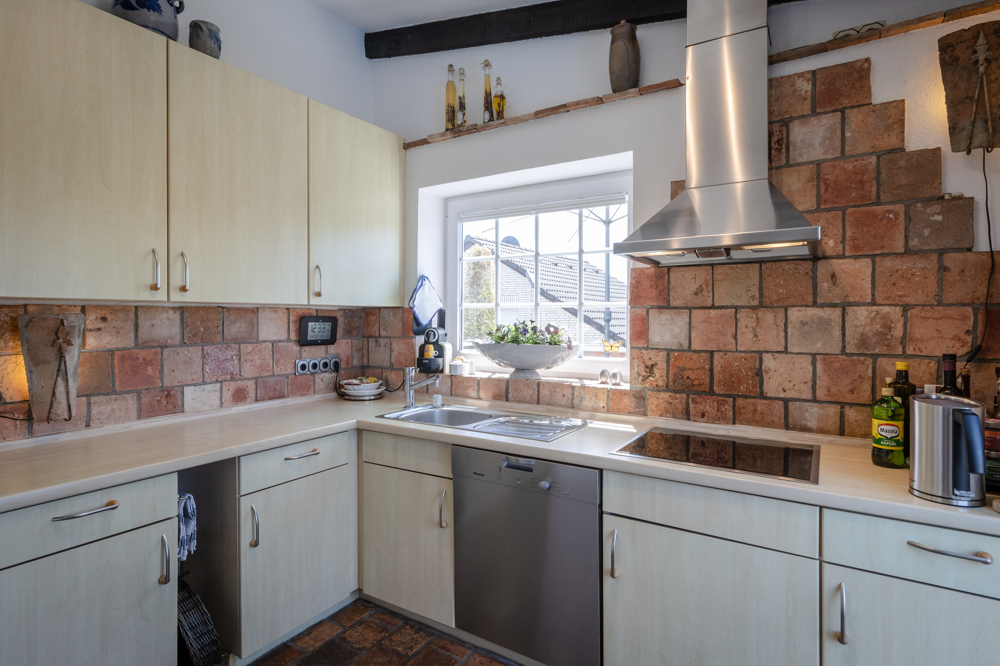 Die Einbauküche verfügt über hochwertige Elektrogeräte und kann auf Wunsch übernommen werden, ebenso einzelne Möbel und Dekorationen.