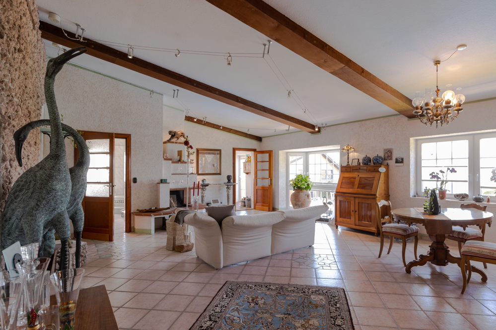 In diesem Bereich der Wohnung befindet sich ein weiterer großer Wohnraum mit Kaminofen.
