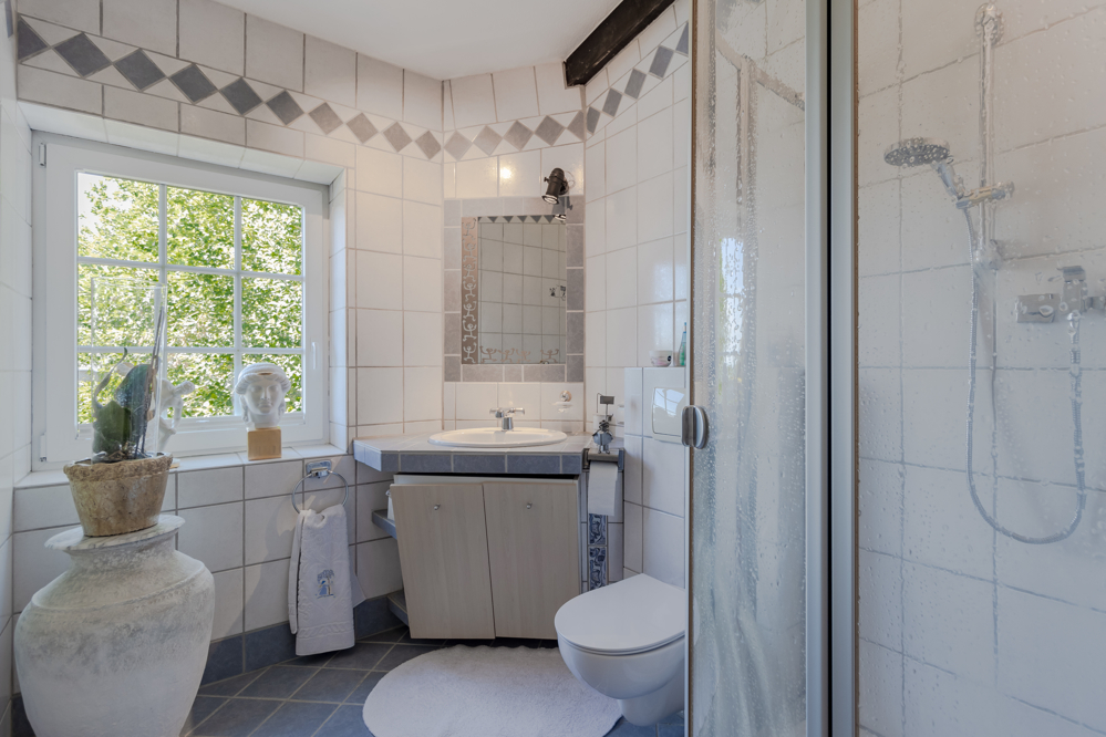 Freiberufler könnten hier einen repräsentativen Konferenzraum einrichten. Nicht zuletzt verfügt die Wohnung über 2 Bäder mit Tageslicht, eines mit Eckbadewanne und Dusche, das andere mit Dusche.