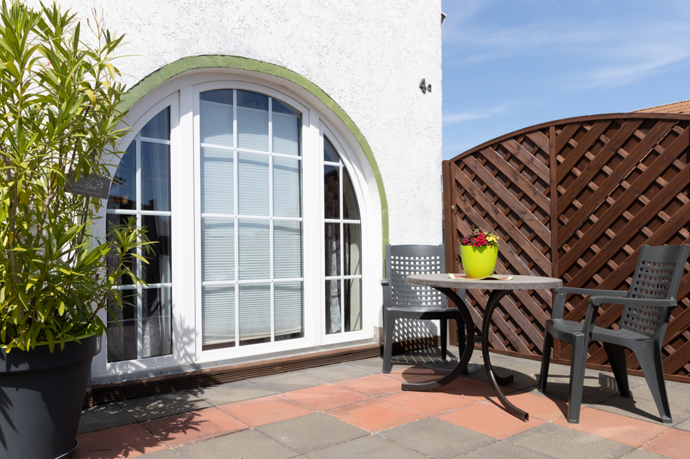 Im Erdgeschoss werden Sie empfangen von einer modernen Einbauküche mit allen üblichen Elektrogeräten und 2 kleinen Schlafzimmern, die Sie ohne großen Aufwand zu einem großzügigen Wohn-Ess-Bereich umwandeln könnten.