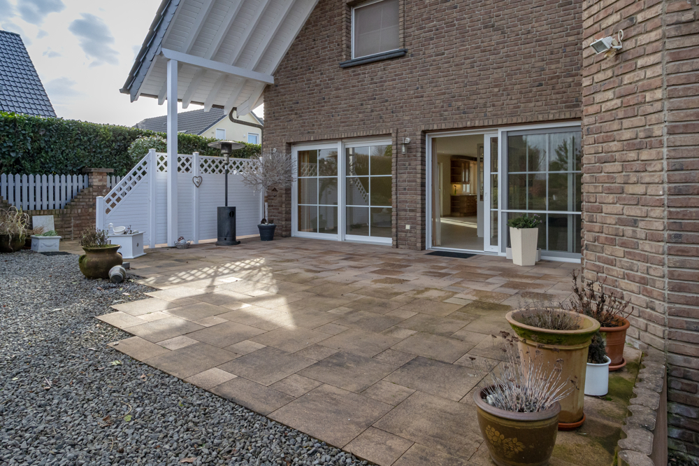 Der große Garten ist pflegeleicht angelegt mit 3 Terrassen in alle Himmelsrichtungen.