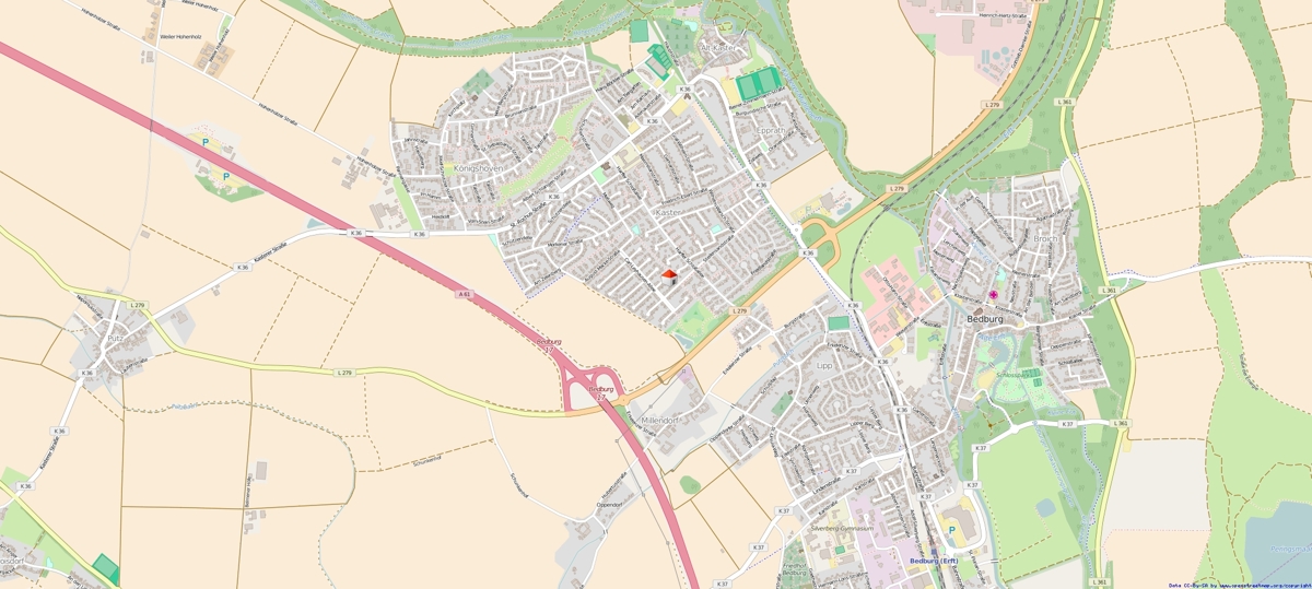 Die Stadt Bedburg im Rhein-Erft-Kreis liegt im Städtedreieck Aachen, Düsseldorf, Köln.Ca. 25.000 Einwohner leben in der kleinen Stadt an der Erft, deren Hauptanziehungspunkt sicherlich das hübsche Wasserschloss mit großem Garten ist.