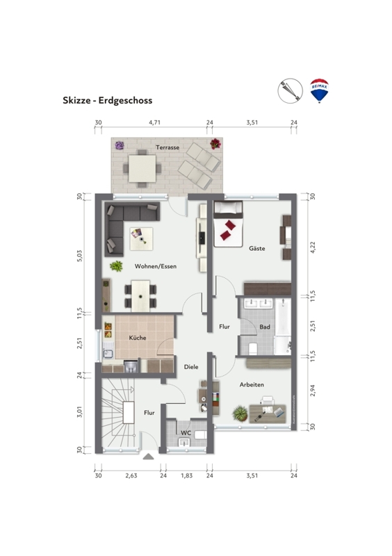 Sie haben die Möglichkeit das Haus mit seinen 7 Zimmern individuell zu gestalten. Ein eigenes Home Office Büro? Kein Problem! Ein zusätzliches Gästezimmer? Kein Problem! Das Erdgeschoss und das Obergeschoss können ebenfalls völlig autark voneinander genutzt werden - somit wäre in diesem Haus ein "Mehrgenerationenmodell" ebenfalls denkbar. Dadurch, dass die Immobilie komplett unterkellert ist (Deckenhöhe ca.2,20m) ergeben sie hier weitere Gestaltungsmöglichkeiten. So wurde ein Raum als Heimkino und ein weiterer Raum als Fitnessraum genutzt.