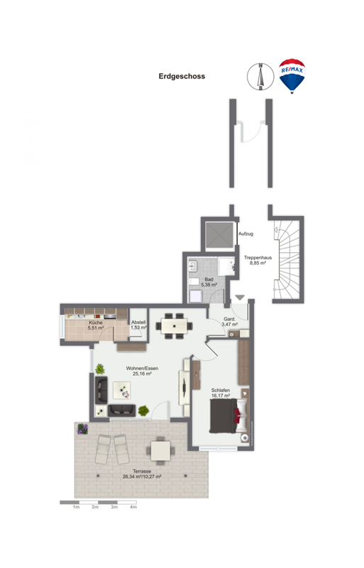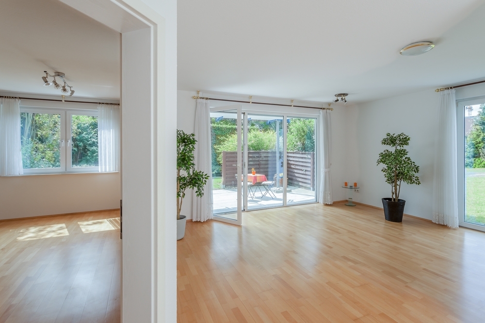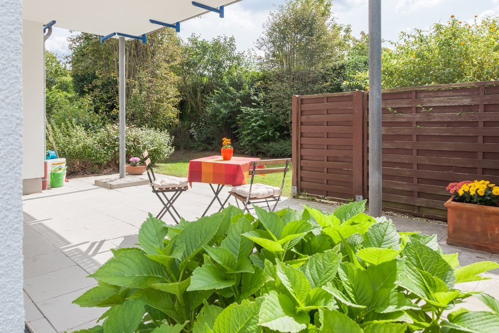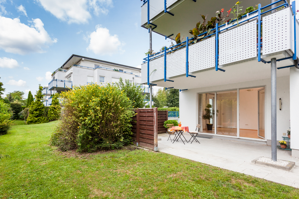 Die insgesamt nach Süden ausgerichtete Wohnung mit Terrasse im Erdgeschoss lädt zum Relaxen ein.