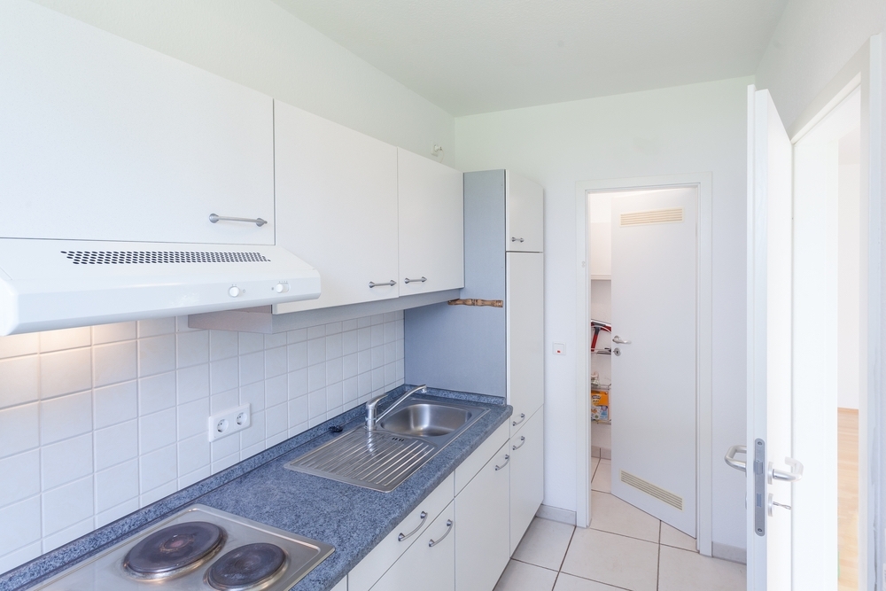 Als Mieter erwartet Sie hier eine frisch gestrichene Wohnung mit Parkettboden, Terrasse und Einbauküche.