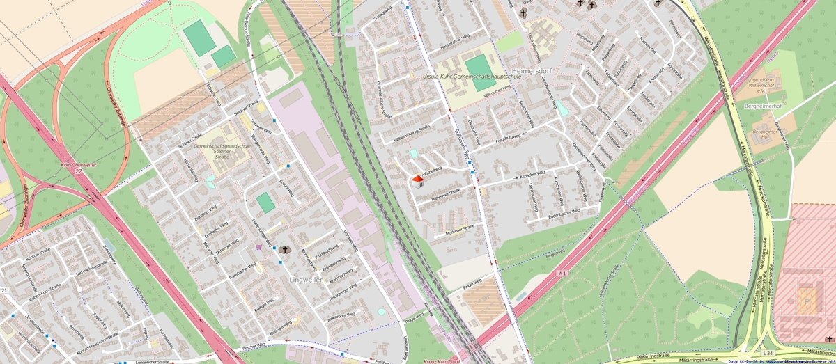 Das angebotene Apartment liegt in einer ruhigen Seitenstraße des Stadtteils Heimersdorf, ca. 10 km westlich der Kölner Innenstadt mit sehr guter Infrastruktur.Die Nähe zu den öffentlichen Verkehrsmitteln ist besonders für Pendler interessant. Die S-Bahn (8 min) mit direkter Verbindung zur Innenstadt und diverse Buslinien (100 m) ermöglichen ein rasches Vorankommen in alle Himmelsrichtungen. Die Autobahnanschlussstelle der BAB 1 und das Autobahnkreuz Köln-Nord (A1-A57) liegen nur wenige Autominuten entfernt. Mit dem Auto erreichen Sie das Kölner Zentrum in ca. 15 min, den Flughafen Köln-Bonn in 25 min und den Düsseldorfer Flughafen in ca. 35 min.