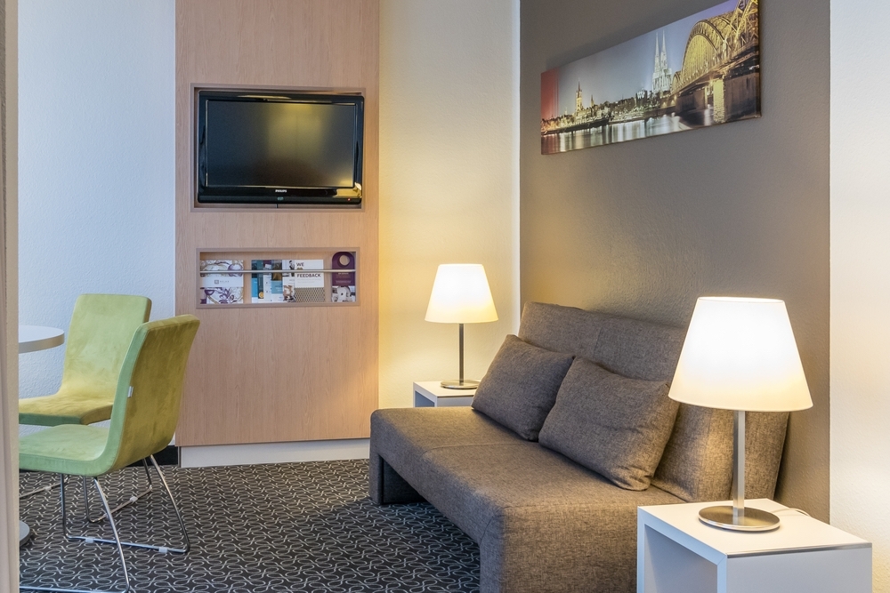 Durch die zentrale Lage ist das Mercure Hotel Severinshof Köln City bei Touristen und Geschäftsleuten sehr beliebt. Der Kölner Dom, das Schokoladenmuseum und der Hauptbahnhof sind jeweils in etwa 12 Gehminuten zu erreichen. Zur Köln Messe benötigen Gäste ca. 7 Minuten Fahrzeit. Ebenso nah sind zahlreiche große Unternehmen und das Rhein-Energie-Stadion. Gäste, die mit dem Auto anreisen, folgen der Beschilderung "Severinstraße". Eine Bushaltestelle befindet sich direkt am Hotel, die U-Bahnanbindung in unmittelbarer Nähe.Ausstattung: