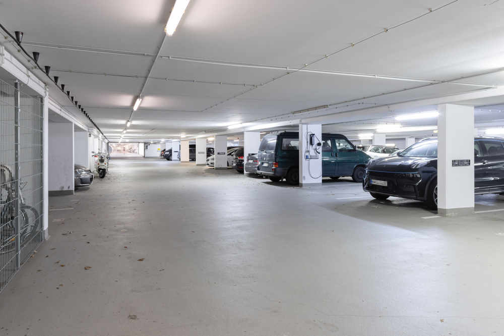 Der Tiefgaragenstellplatz wird zusammen mit der Wohnung verkauft.