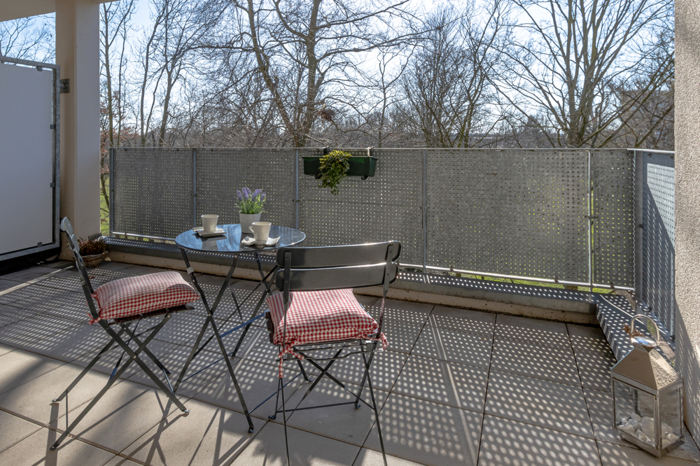 Highlight der Wohnung ist die große überdachte Terrasse in Süd-West-Lage mit Parkblick - hier lässt es sich herrlich entspannen.