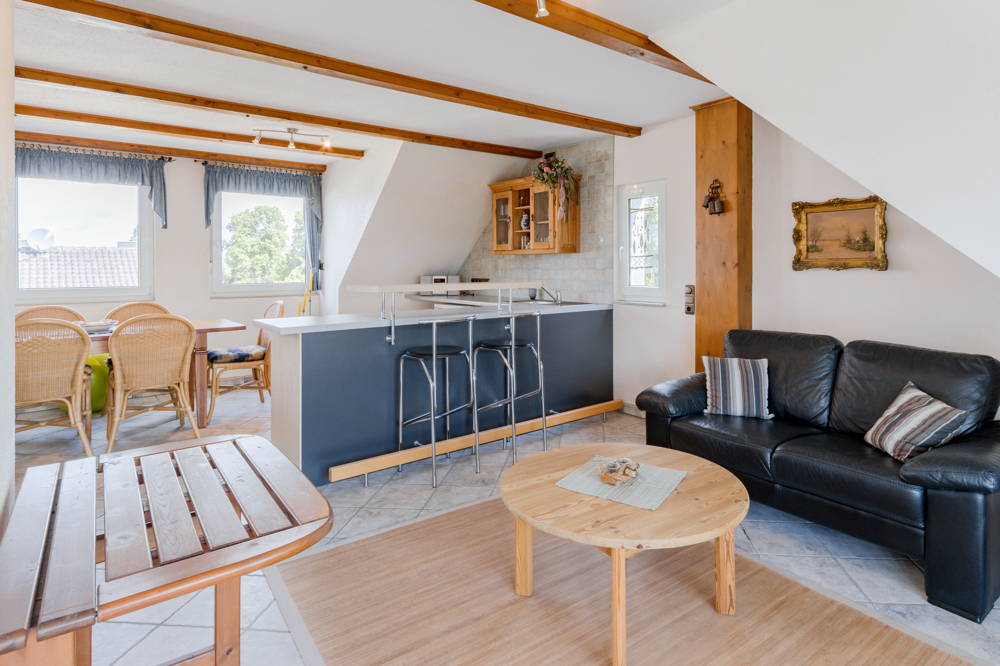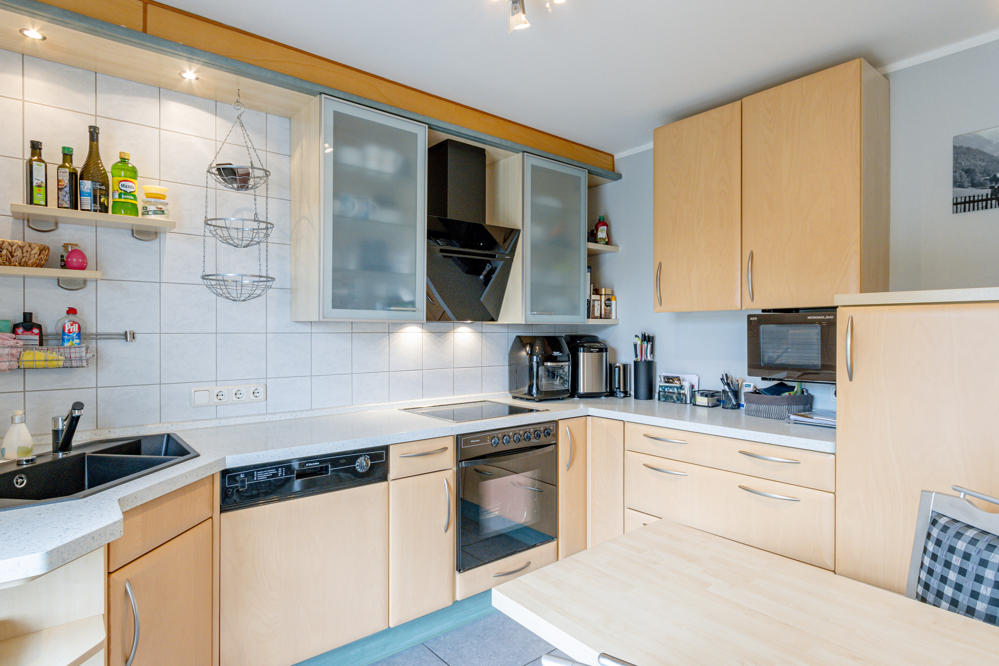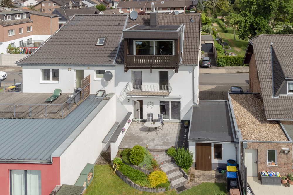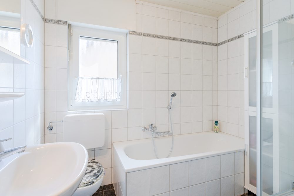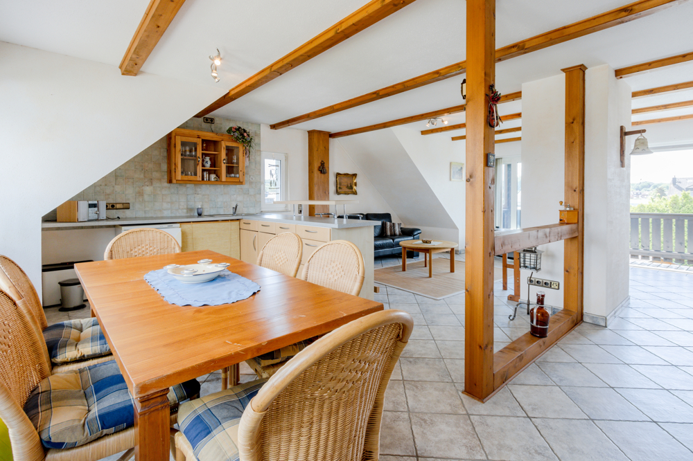 Sie können aufgrund der Bauweise das sowohl Erdgeschoss als eine Wohnung, als auch das Obergeschoss in Verbindung mit dem Dachgeschoss als Maisonette Wohnung benutzen.
