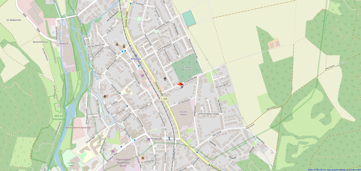 Kreuzau gehört zu dem Kreis Düren und liegt zwischen Aachen und Köln in Nordrhein-Westfalen am Nordrand der Eifel.Die Stadt Düren ist gut an die Metropole Köln und an die Stadt Aachen angebunden: Mit der Bahn bzw. S-Bahn brauchen Sie für die Strecke Köln-Düren ca. 23 min und Düren-Aachen ca. 30 min.