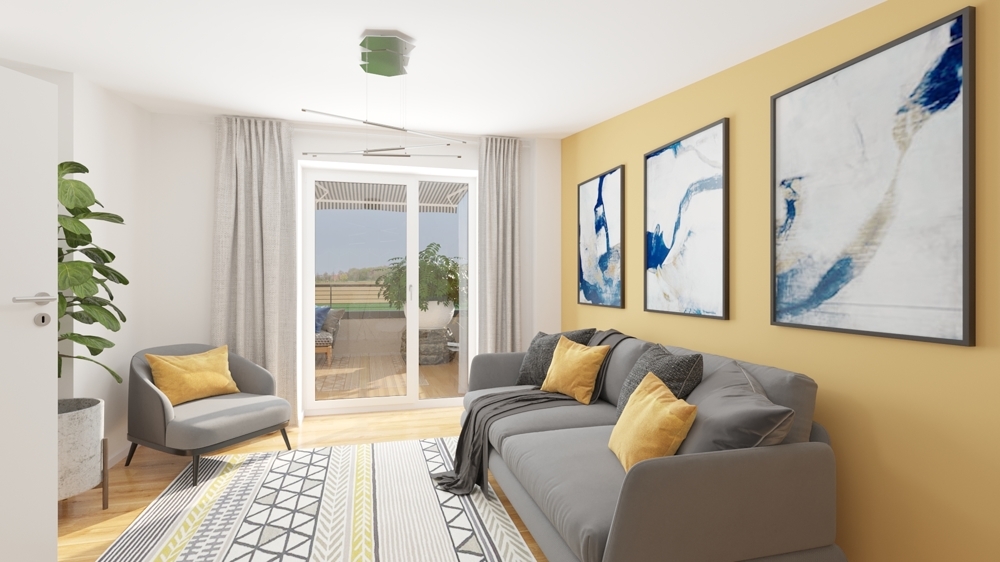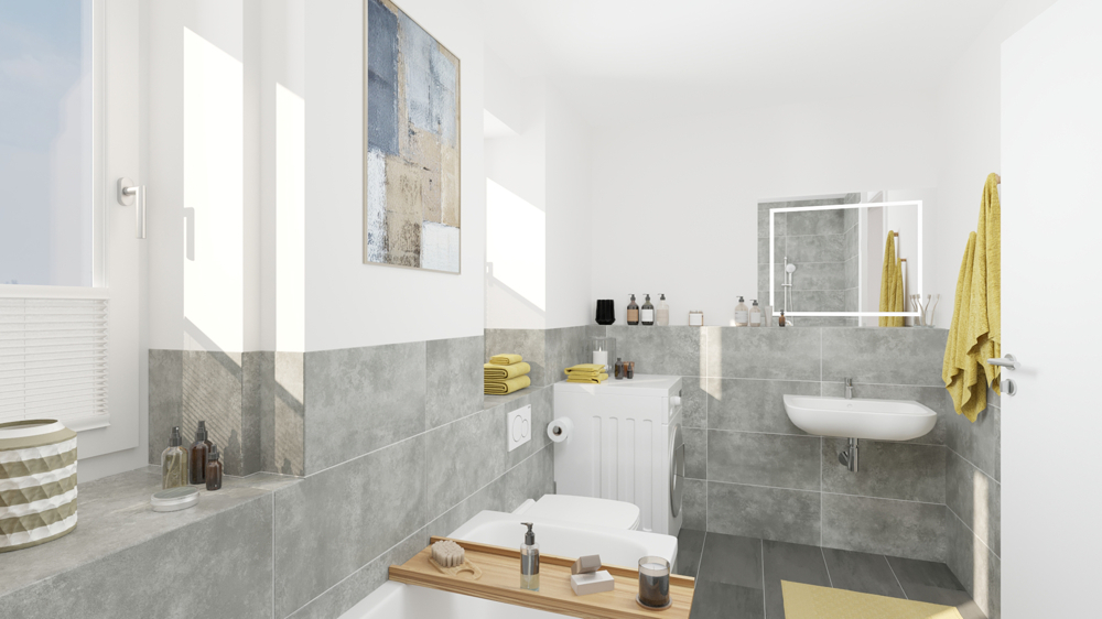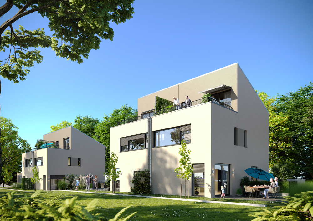 Energieeffiziente Technologien wie eine Wärmepumpe und moderne Dämmung sorgen für nachhaltiges Wohnen und gehören zu den Standards des Bauträges.