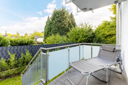 Den Garten erreichen Sie über die Terrasse (ca. 17,5 Quadratmeter) oder den Balkon (ca. 5,7 Quadratmeter).