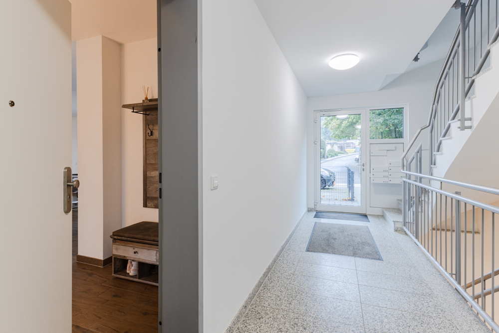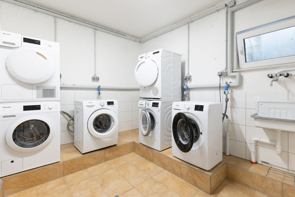 Weitere praktische Annehmlichkeiten: Im Kellergeschoss befinden sich eine gemeinschaftliche Fahrradraum- und Waschküche. Zusätzlich gibt es einen separat abschließbaren Abstellraum, der zusätzlichen Stauraum bietet.