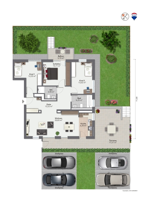Zur Wohnung gehört außerdem ein eigener Stellplatz.