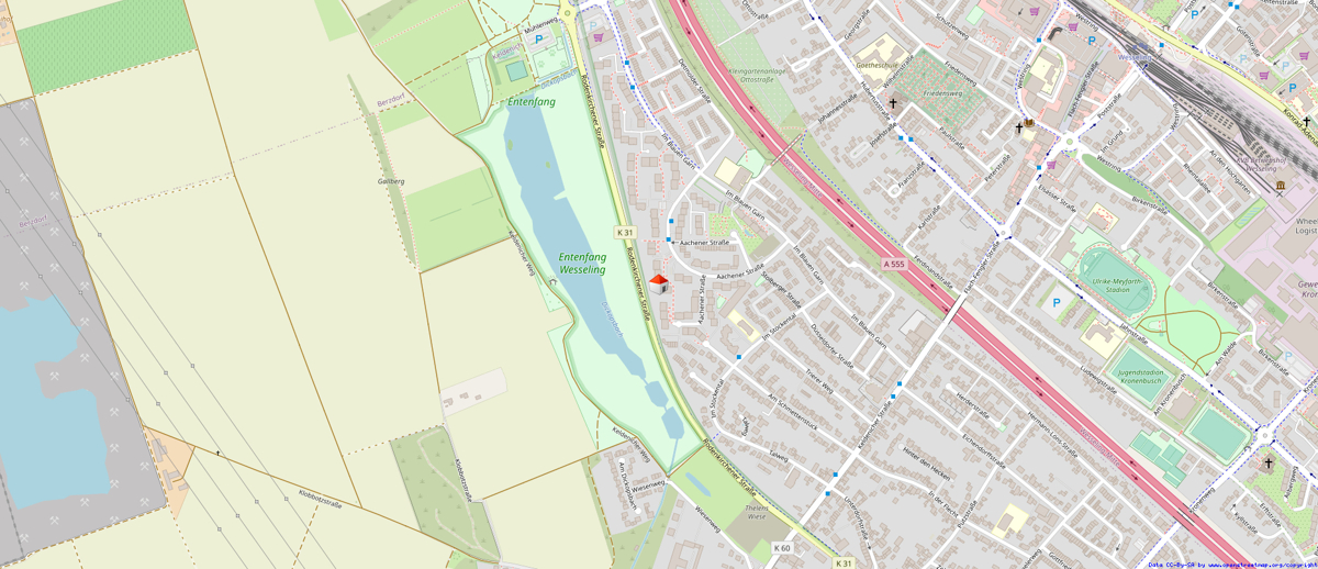 Die Eigentumswohnung befindet sich in einer ruhigen und gut angebundenen Straße in Wesseling.Die Immobilie überzeugt durch ihre ausgezeichnete Anbindung an den öffentlichen Nahverkehr. Die nächste Bushaltestelle befindet sich nur 100 Meter entfernt, während die Bahnstation Wesseling in wenigen Gehminuten erreichbar ist und eine schnelle Verbindung nach Köln oder Bad Godesberg ermöglicht. Auch für Autofahrer ist die Lage ideal: Die Autobahnauffahrt zur A 555 (Bonn–Köln) ist lediglich 1,8 Kilometer entfernt und gewährleistet eine zügige Anbindung an das überregionale Straßennetz. Der internationale Flughafen Köln/Bonn liegt in etwa 25 Kilometern Entfernung und ist bequem erreichbar.