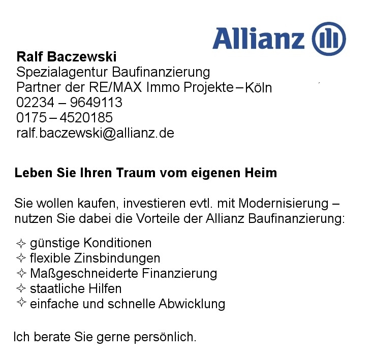 Frechen-Königsdorf hat sich zu einem begehrten und renommierten Wohnort im Kölner-Westen entwickelt. Sie genießen hier, am Rande des Villeforstes gelegen, eine idyllische Umgebung / Naherholung und profitieren gleichzeitig von einer ausgezeichneten Infrastruktur und einer top Verkehrsanbindung. Über das nah gelegene Autobahnkreuz Köln-West erreichen Sie alle lokalen und regionalen Standorte in der Metropole Köln innerhalb von nur 20-30 Minuten per PKW. Mit den Linien 12 + 13 der S-Bahn sind Sie in nur 15 Minuten am Kölner Hauptbahnhof, sowie in 30 Minuten am Flughafen Köln-Bonn.In Königsdorf finden Sie eine gute Versorgung des täglichen Bedarfs vor: Ärzte, Apotheken, Kindergärten, Grundschule sowie Banken und Postamt. Lebensmittelmärkte, Discounter und ein Wochenmarkt bieten in Königsdorf beste Einkaufsmöglichkeiten. Fachgeschäfte runden das Angebot ab.