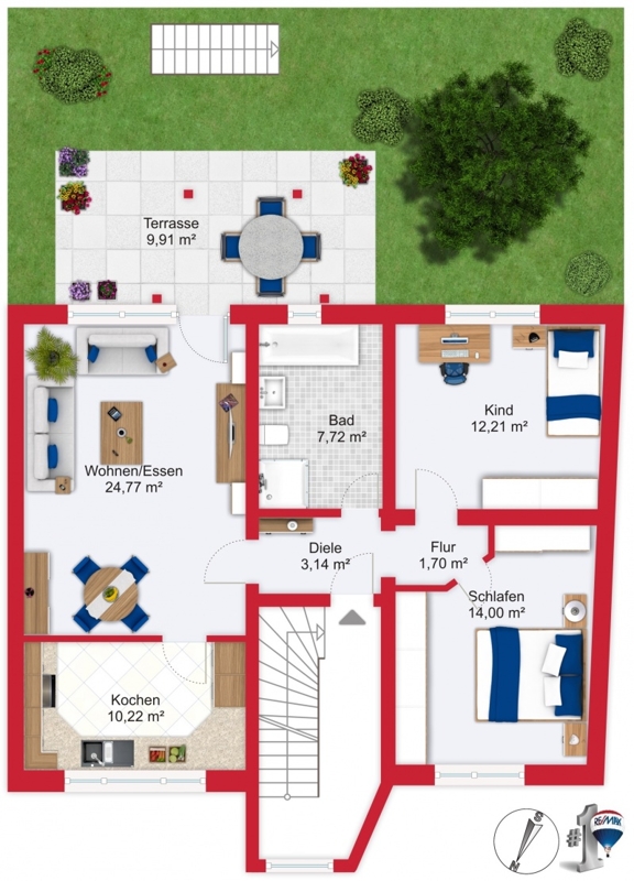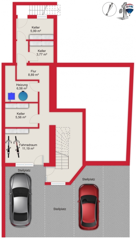 Ein Fahrradabstellraum und ein Waschraum im Erdgeschoss runden das Raumkonzept ab.