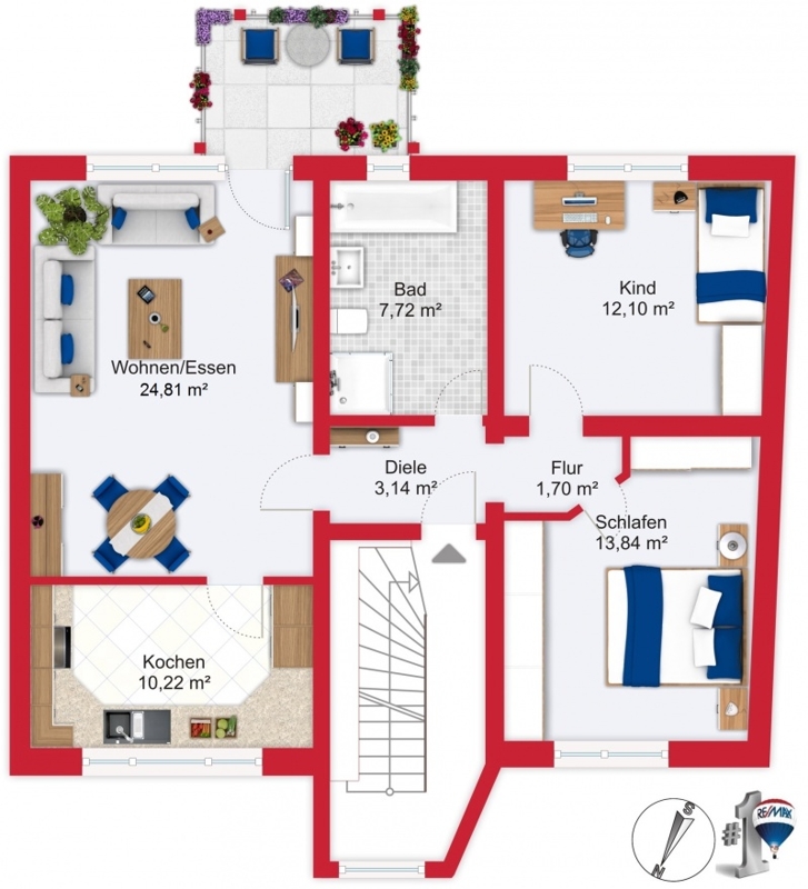Das Objekt bietet drei komfortable 3-Zimmerwohnungen zwischen 69 m² und 78 m² jeweils mit Terrasse oder Balkon, Außenstellplatz und Kellerraum.