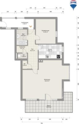 Die Wohnung befindet sich im 1. Stock eines im Jahre 2000 erbauten, sehr gepflegten Wohnhauses (16 Parteien) im Zentrum von Seekirchen. Über einen eigenen, absperrbaren Laubengang erreicht man die Eingangstüre zur Wohnung. Neben dem Vorraum, dem Badezimmer mit Badewanne, dem WC und dem Abstellraum verfügt die Wohnung über ein Schlafzimmer, eine Küche sowie über ein großes Wohnzimmer. Die Leicht Einbauküche mit vollintegrierten Siemens Einbaugeräten (Ceranfeld, Backofen, Geschirrspüler u. Kühl/Gefrierkombination) bietet jeglichen Komfort. Eine gemütliche Sitzecke lädt zum Verweilen und gemeinsamen Kochen ein.Ein ganz besonderes Highlight dieser Wohnung ist das sehr geräumige, 42m² große Wohnzimmer mit Zugang zum 18m² großen, südwestlich ausgerichteten Balkon. Vom seitlichen Teil des Balkons hat man einen direkten Blick auf die Stiftskirche von Seekirchen.